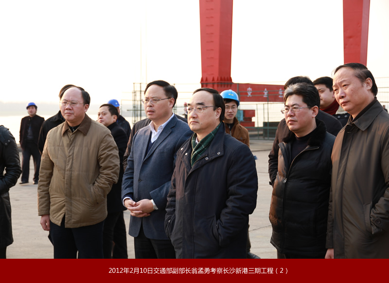 2012年2月10日,交通運輸部黨組副書記、副部長翁孟勇來長沙新港考察時強調(diào):長沙新港變化一次比一次大,當前要借助湖南加大水運發(fā)展力度的有利契機,加快樞紐、港口和湘江2000噸級航道提升建設(shè),更好地服務經(jīng)濟社會和航運的持續(xù)發(fā)展。